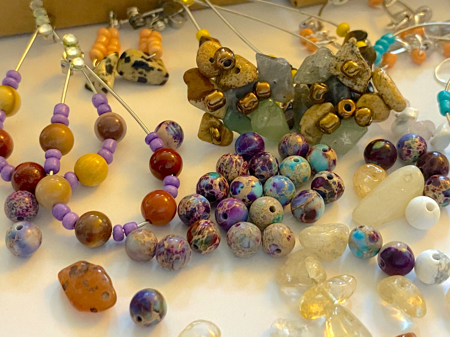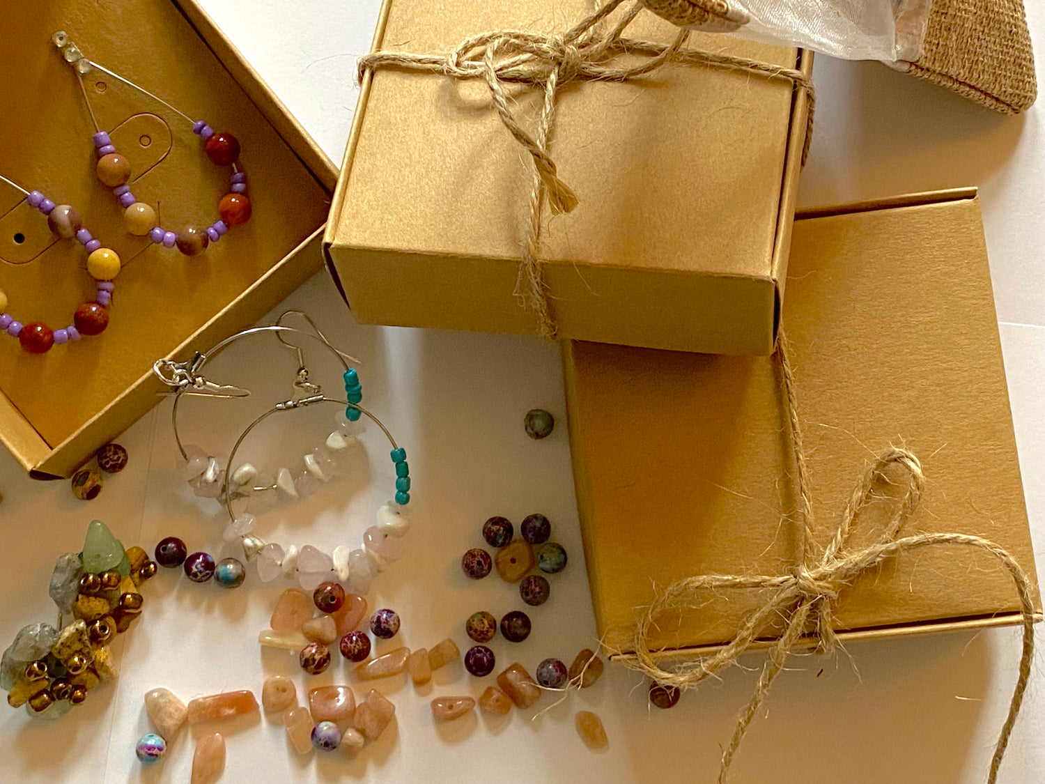 I began mixing beads and gemstones to make jewelry because I was looking for alluring designs. Making these earrings and necklaces is a hobby.