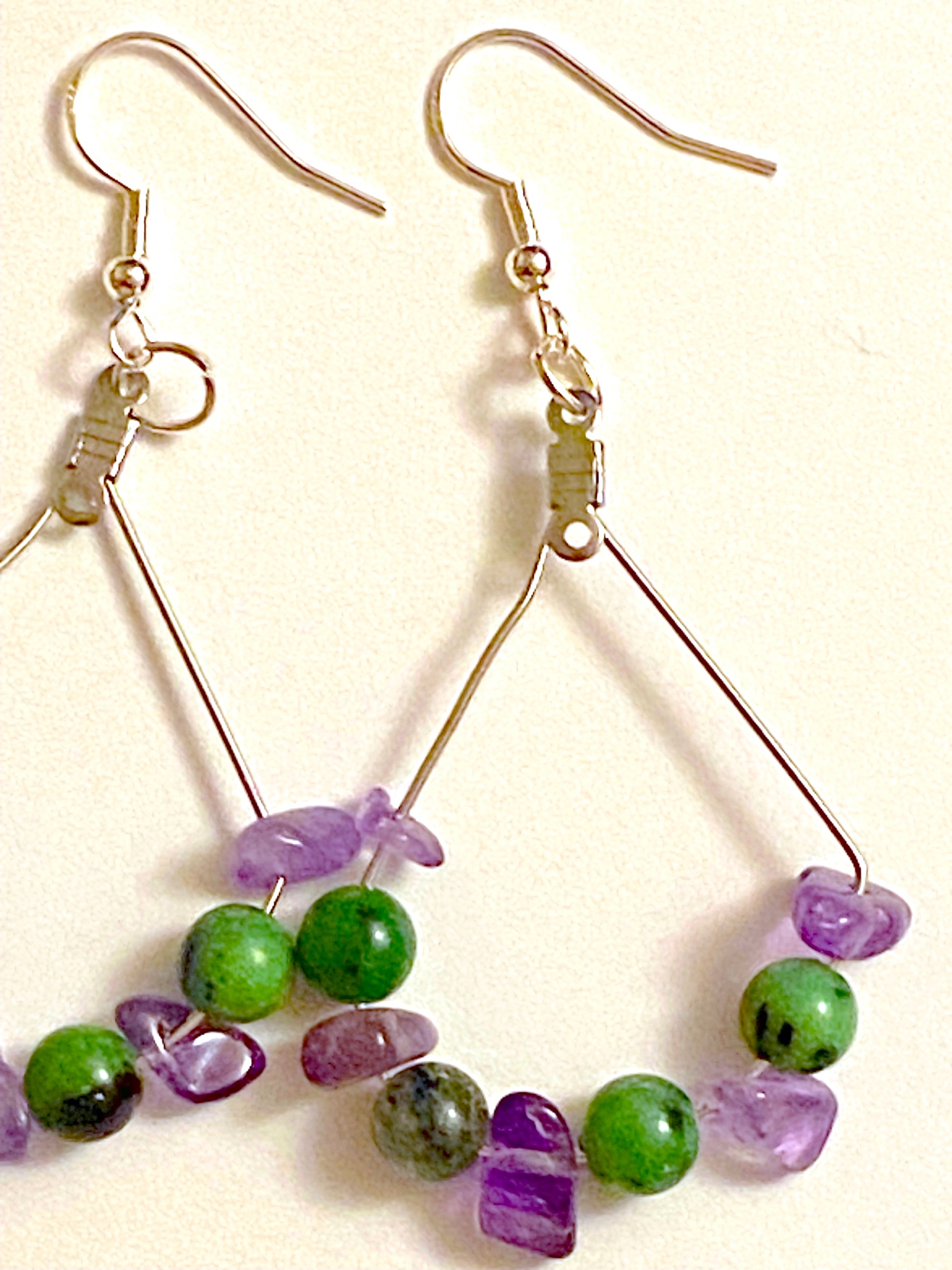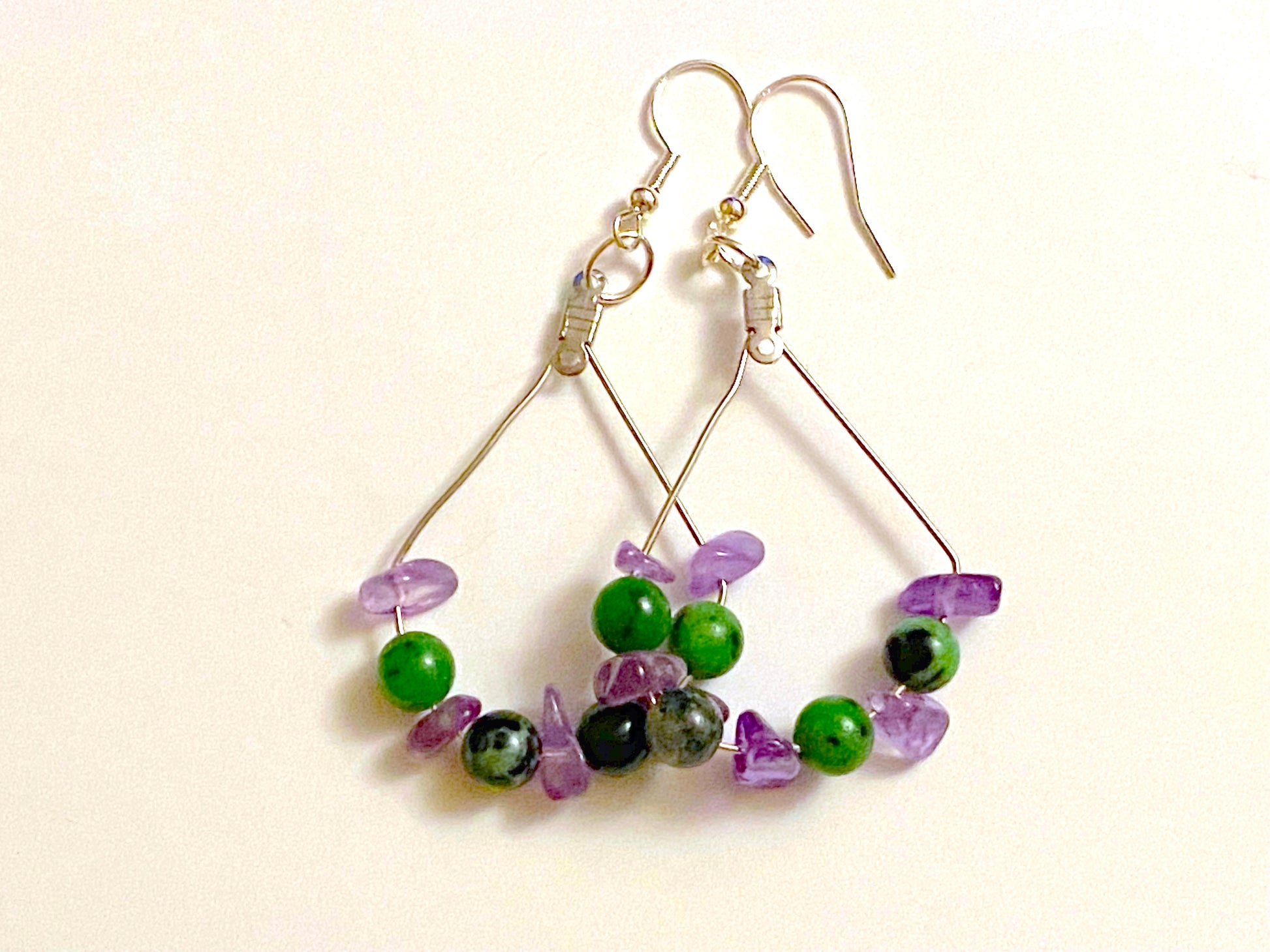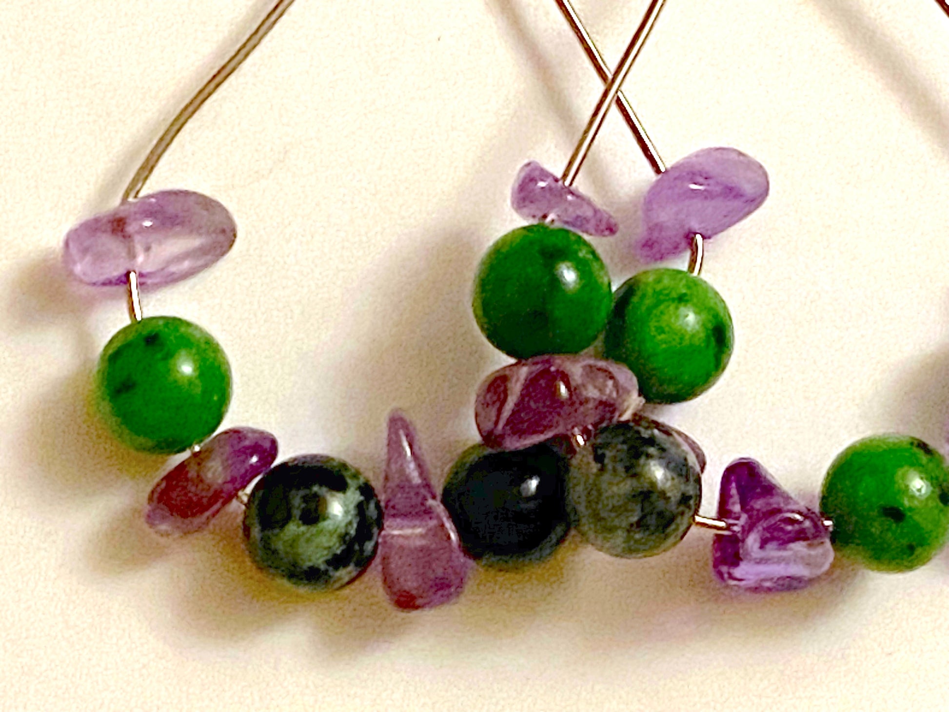 Amethyst Natural Ruby Zoisite Jasper Hoops