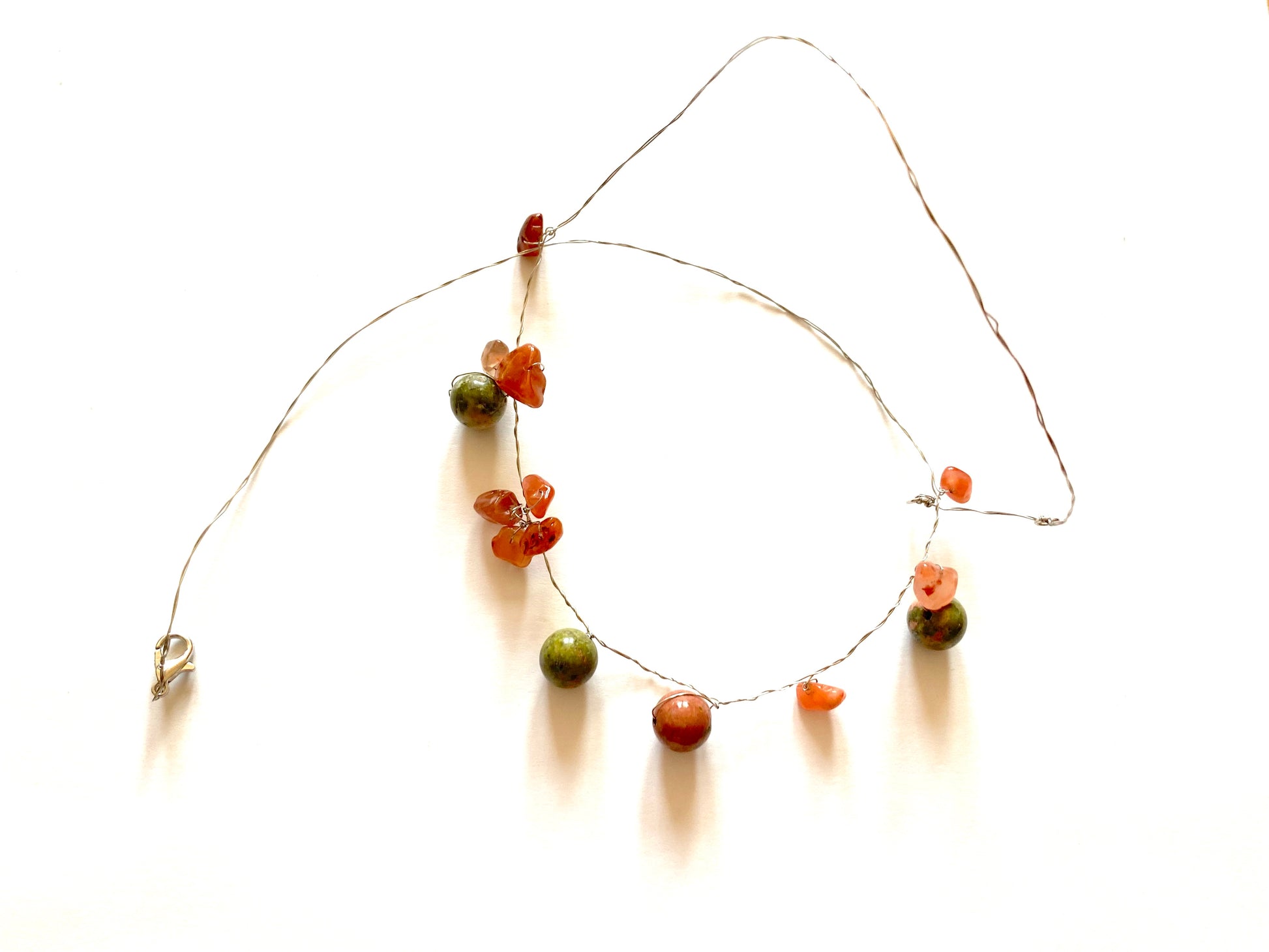 Transform your look with the Red Agate Green Bead necklace. Crafted with twisted metal wire and adorned with stone beads and red agate stone chips, this chic necklace is a must-have for any fashion-forward individual. The red agate stones add a bold and sophisticated touch, elevating your style to the next level.