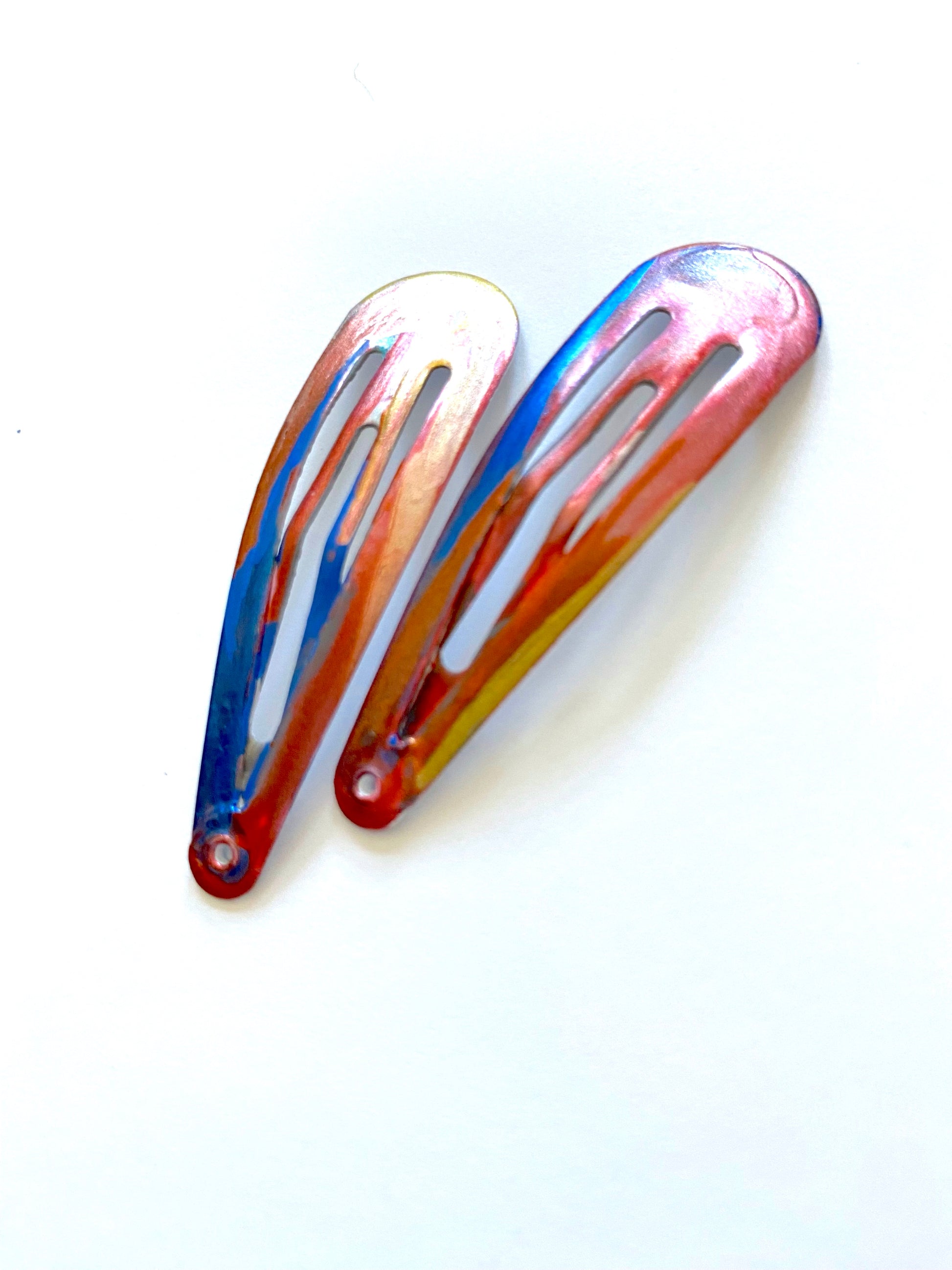 Materials - Metal white barrette, metallic water-based paint markers, acrylic paint markers