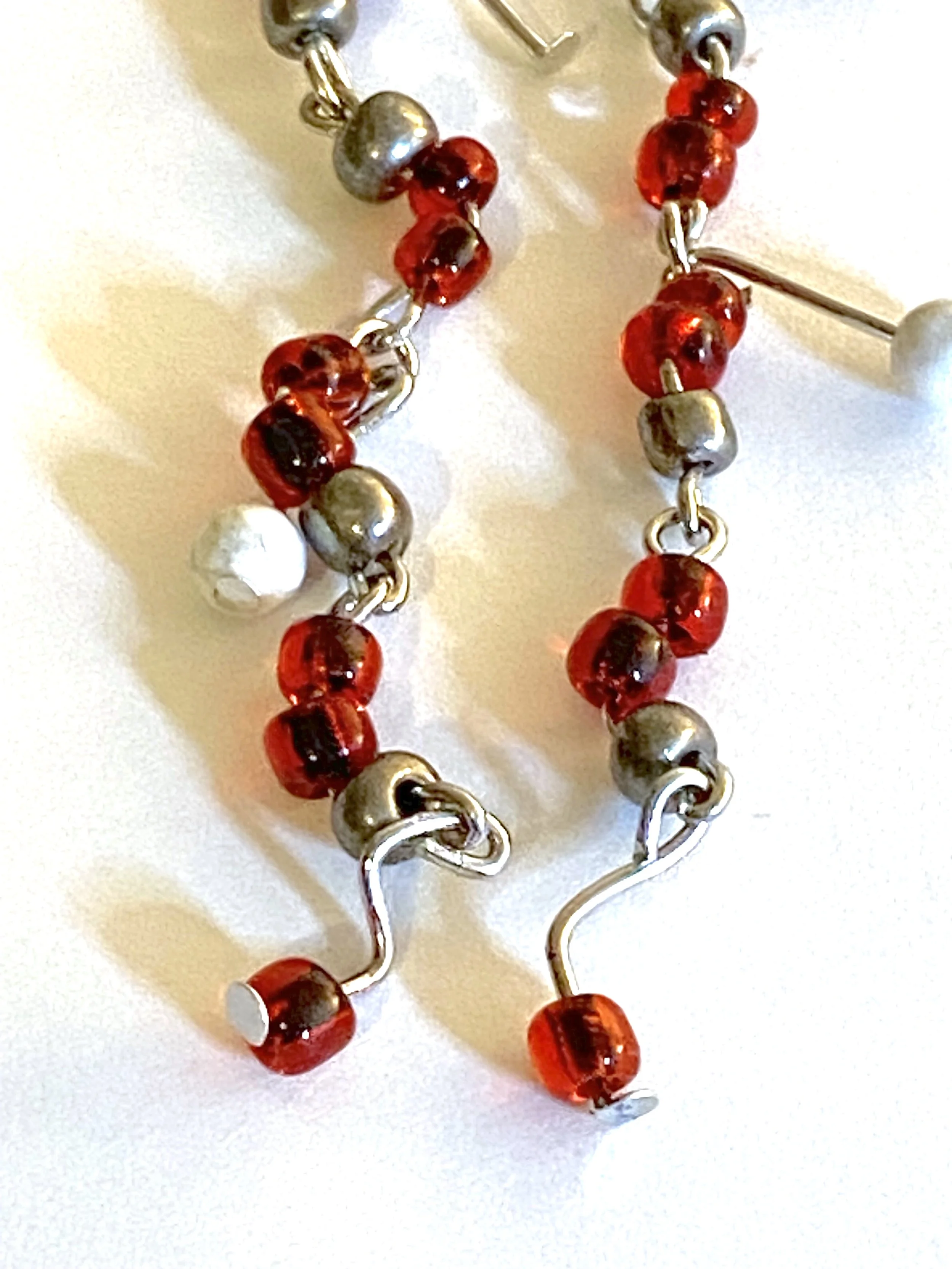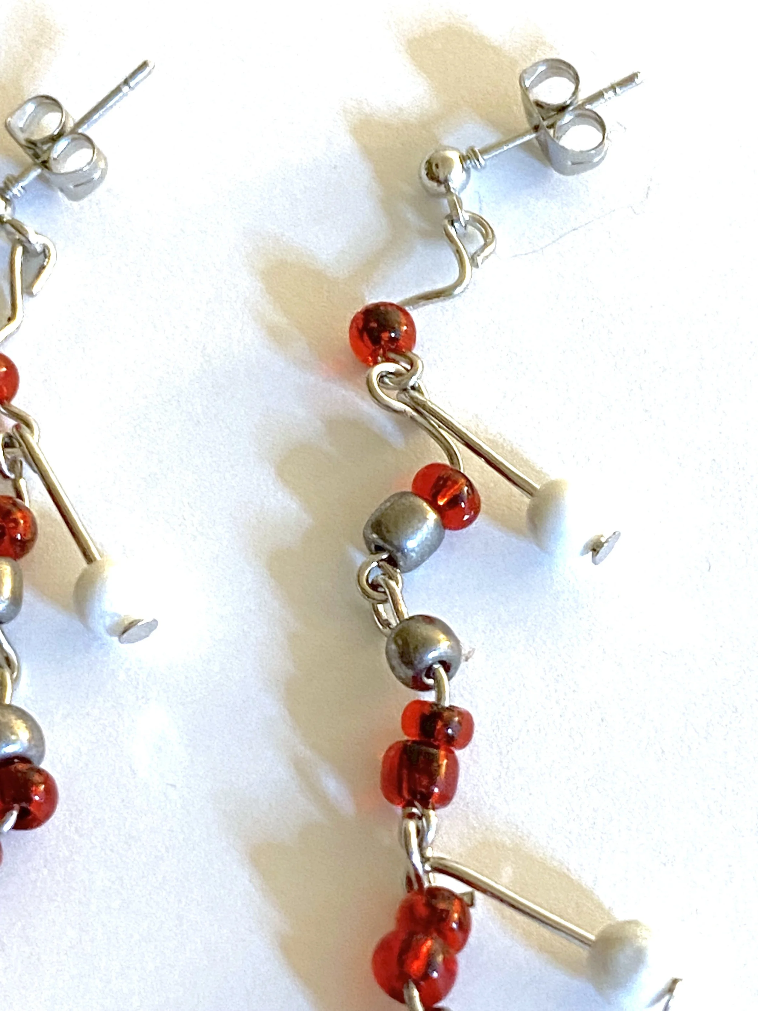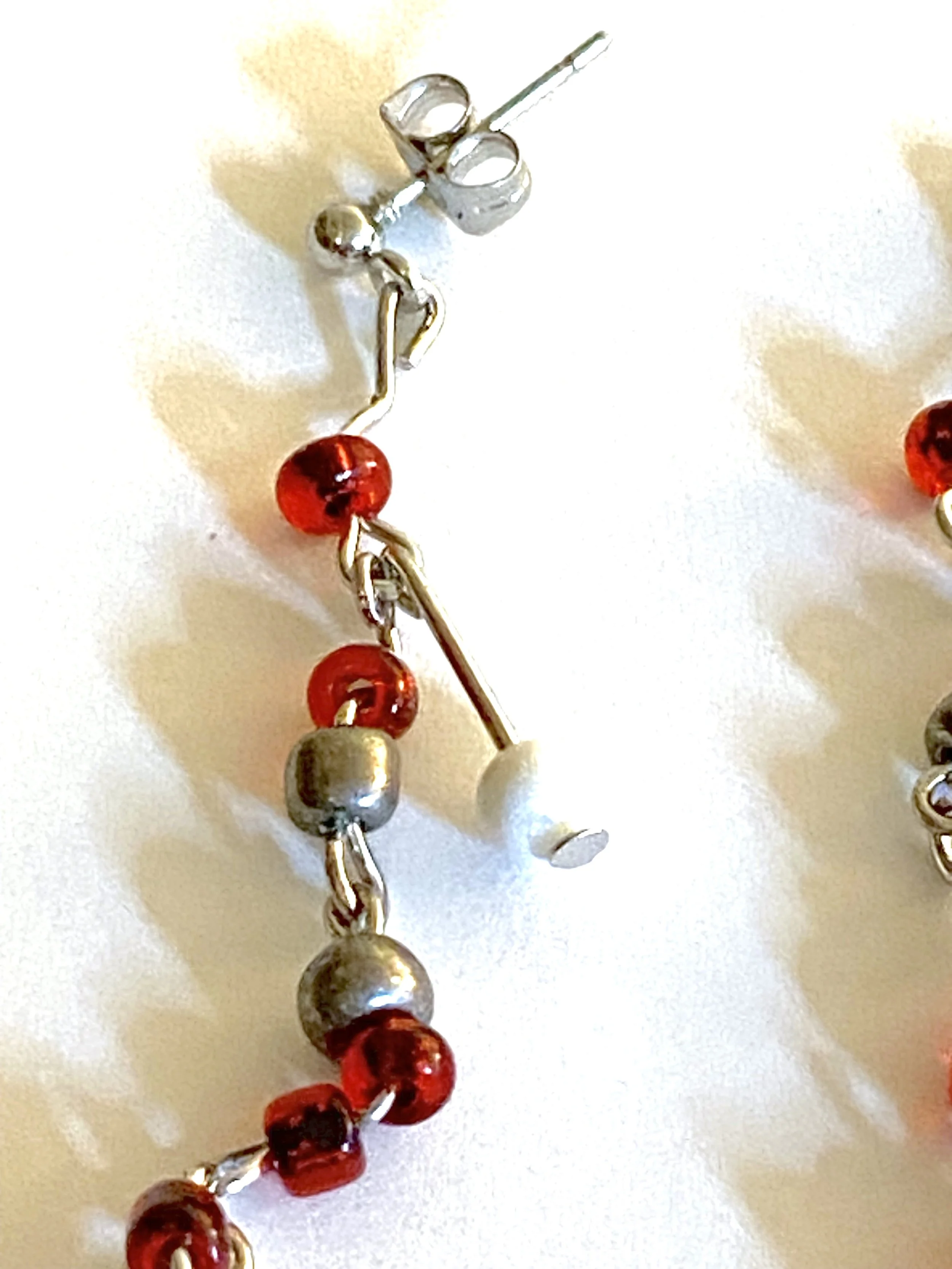 Sea-green color of amazonite and sand texture of picture jasper gemstones create a earthy design to pair with casual or dressy outfits. Metallic dark gold glass beads add sheen to the studs.