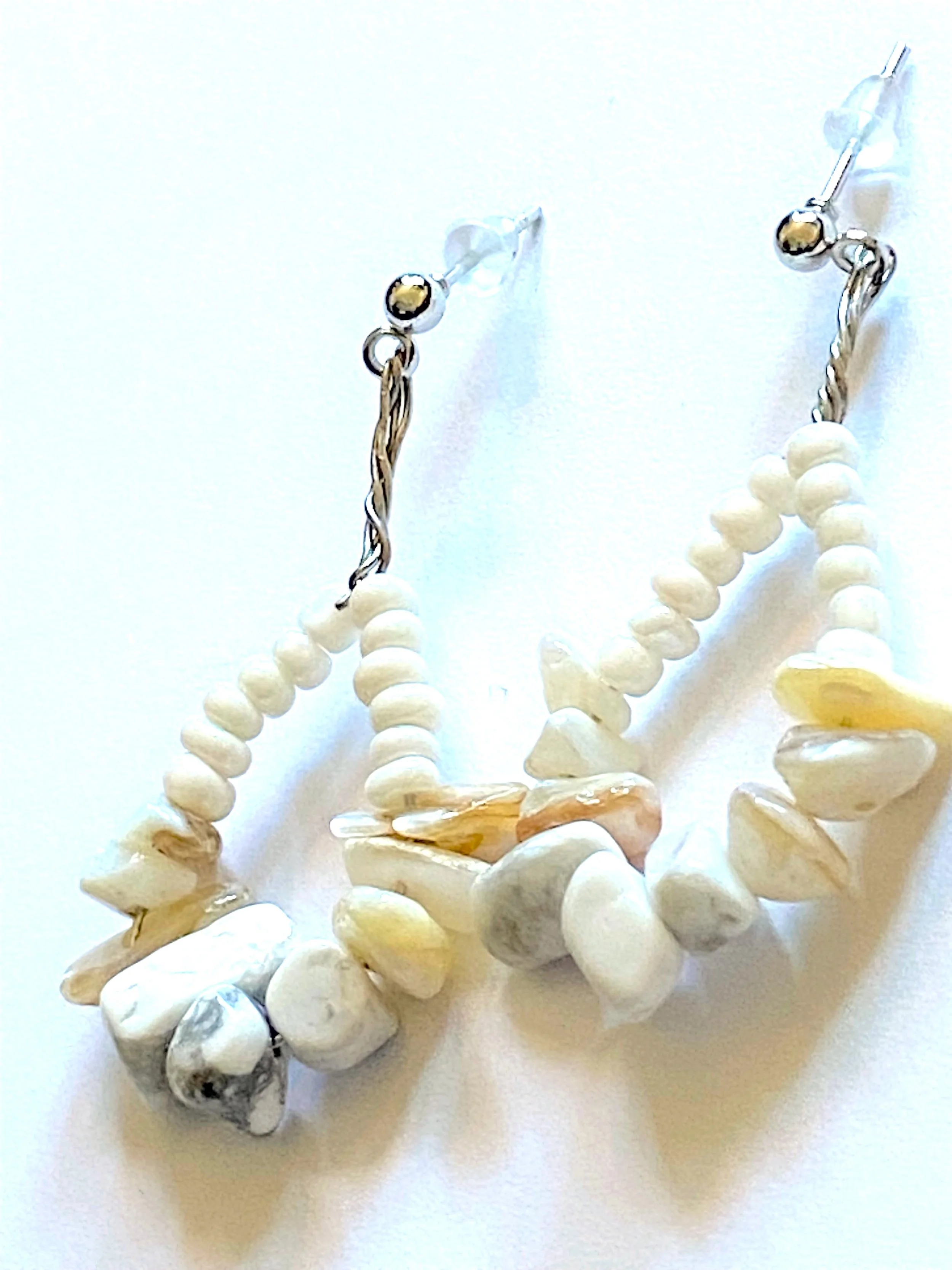 Dress up your look with a pair of handmade dangling earrings crowded with green, and light and dark purple fluorite gemstones. Shades of purple dance with the light to add zest to the pale sea-green fluorite gemstones in these flamboyant large hoops. Party in style or add panache to your daily routine.
